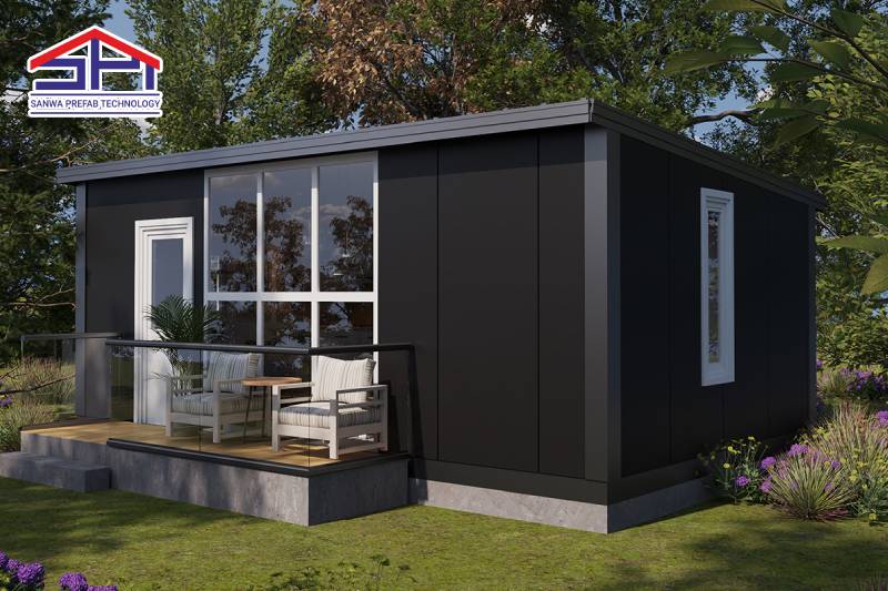 Material rumah instan mendukung desain minimalis dengan baik. Rangka baja ringan galvanis memungkinkan bukaan lebar tanpa kolom banyak, sementara panel sandwich dengan inti PU atau PIR memberikan isolasi termal superior, sehingga ruangan tetap nyaman tanpa AC berlebihan. Lantai vinyl atau SPC tahan air dan mudah dibersihkan, cocok untuk keluarga dengan anak kecil. Furnitur built-in seperti lemari dinding, tempat tidur dengan laci bawah, dan meja lipat multifungsi menjadi elemen kunci untuk menjaga kerapian dan fungsionalitas. Warna monokrom dengan aksen hijau tanaman indoor atau pot vertikal menambah kesan segar tanpa mengurangi kesederhanaan.